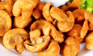 Oprószam pieczarki przed smażeniem. Nie puszczają wody i są złote