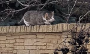 Zobaczył ptaka. Tak się to skończyło. Kot nagrany