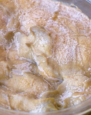 Mieszam z ziemniakami, wylewam na patelnię. Zaspokaja głód na długo