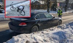 Jechał na rowerze nie przejmując się zimą. Potrącił go 82-latek
