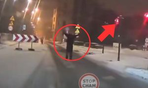 Skandaliczne zachowanie pieszego. W pewnym momencie aż zasłonił twarz