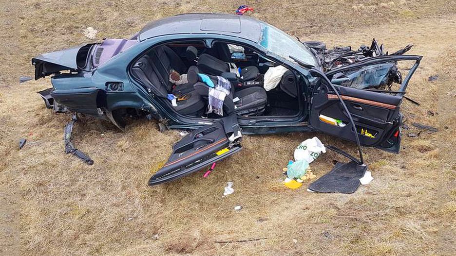 Trójka małych dzieci wyszła z wypadku niemal bez szwanku. Jedyną ranną osobą była ich matka.