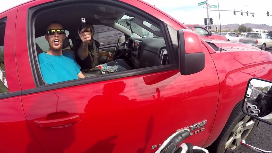 Na pierwszych światłach zrównał się więc z autem i postanowił zapytać, o co chodzi. Kiedy szyby wozu uchyliły się, w jego kierunku najpierw posypała się wiązka wulgaryzmów, następnie zaś kierujący samochodem wyciągnął ogromny pistolet, który wymierzył wprost w bogu ducha winnego motocyklistę. Okazało się, że nadpobudliwi Teksańczycy nie mają pretensji do tej konkretnej grupy, ale do ogółu motocyklistów. Byli wściekli, że miłośnicy dwóch kółek "tworzą korki", "jeżdżą w grupach" i w ogóle są winni całemu złu tego świata.