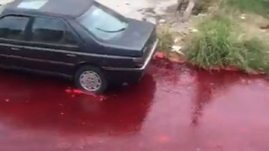 Zbiornik był wypełniony 500 tys. litrów krwi zwierząt. Do incydentu doszło 9 marca i nie wiadomo, czy zbiornik stoczył się z samochodu na ulicy, czy zawalił się w rzeźni. Nagrania, które trafiły do sieci, pokazują ulice wypełnione krwią.