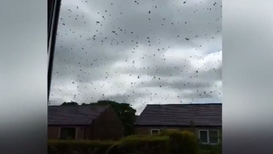 49-letnia Rosalind Ross z przerażeniem nagrywała rój pszczół, który zaatakował okolice jej domu w Mytholmroyd w angielskim hrabstwie West Yorkshire.