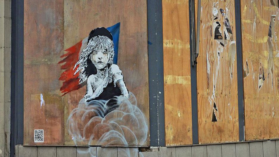 Banksy namalował na murze twarz dziewczynki-uchodźcy. Jej wizerunek jest parafrazą ilustracji musicalu "Les Miserables" (pol. "Nędznicy"). Dziecko przedstawione jest na tle zniszczonej flagi Francji, na jego twarzy maluje się smutek, zaś w oczach widać łzy. Zaszklone oczy nie są jedynie wyrazem smutku nad własnym losem, a reakcją na rozpylony gaz łzawiący, którego puszkę artysta domalował u dołu ekspozycji.