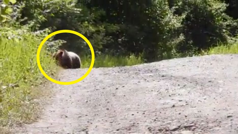 Na początku wideo trudno określić, co tak naprawdę się dzieje. Po wymownym tytule jednak i rozmazanym obrazie możemy się domyślić, że leśniczy Nóżka musiał szybko przed czymś uciekać. Po krótkiej chwili zatrzymuje się i od razu staje się jasne, co było przyczyną szaleńczego biegu. To piękny i ogromny niedźwiedź, który przeszukiwał przydrożne chaszcze.