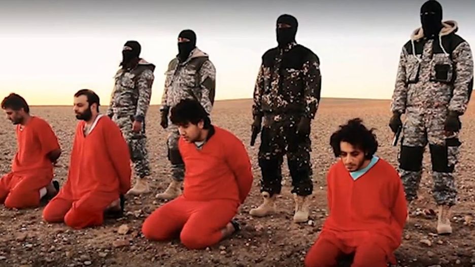 Na filmie widać, jak pięciu skutych mężczyzn zostało straconych strzałem w tył głowy. Najpierw jednak przywódca plutonu egzekucyjnego, stylizujący się na zabitego w listopadzie przez amerykańskiego drona Jihadi Johna, machając bronią sugeruje, że mężczyźni mieli szpiegować na rzecz Wielkiej Brytanii. Zwraca się także bezpośrednio do premiera Wielkiej Brytanii, Davida Camerona, nazywając go "niewolnikiem Białego Domu".