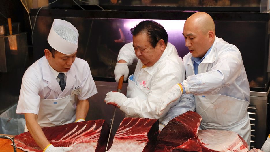 Wielka uczta z królewską rybą. Tak drogi tuńczyk, by w pełni móc cieszyć się jego smakiem, musi zostać zjedzony jak najszybciej. Dlatego chwilę później w restauracji Japończyka urządzono degustację dla specjalnie zaproszonych gości. Honory rozbioru swojej zdobyczy dopełnił oczywiście nabywca.