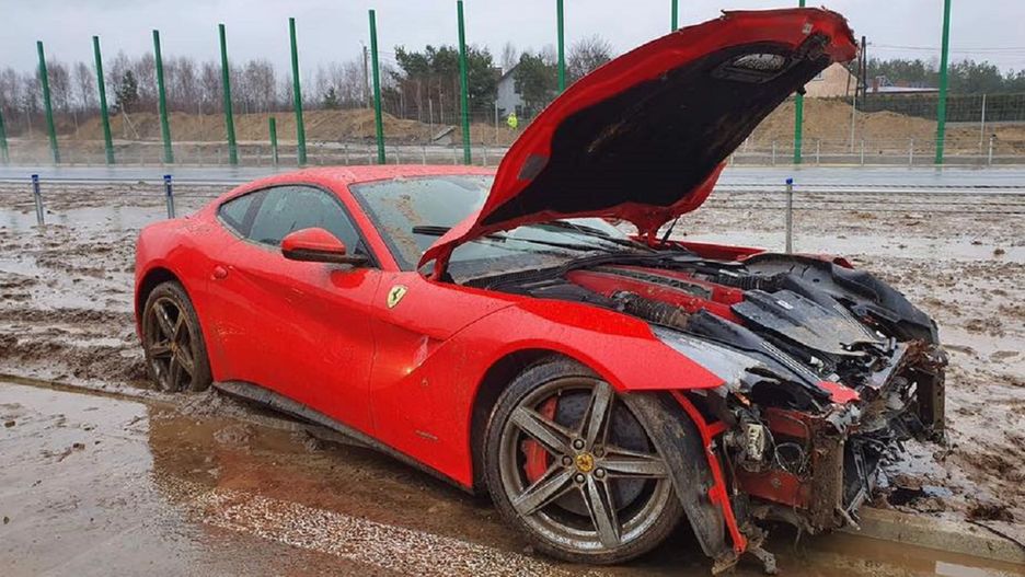 Ferrari F12 Berlinetta jest jednym z niewielu modeli, który ma silnik z przodu. Po zderzeniu czołowym ucierpiało kilka jego części. Ponadto zniszczone są nadkola, reflektory i maska . Naprawa może wynieść nawet kilkadziesiąt tysięcy.