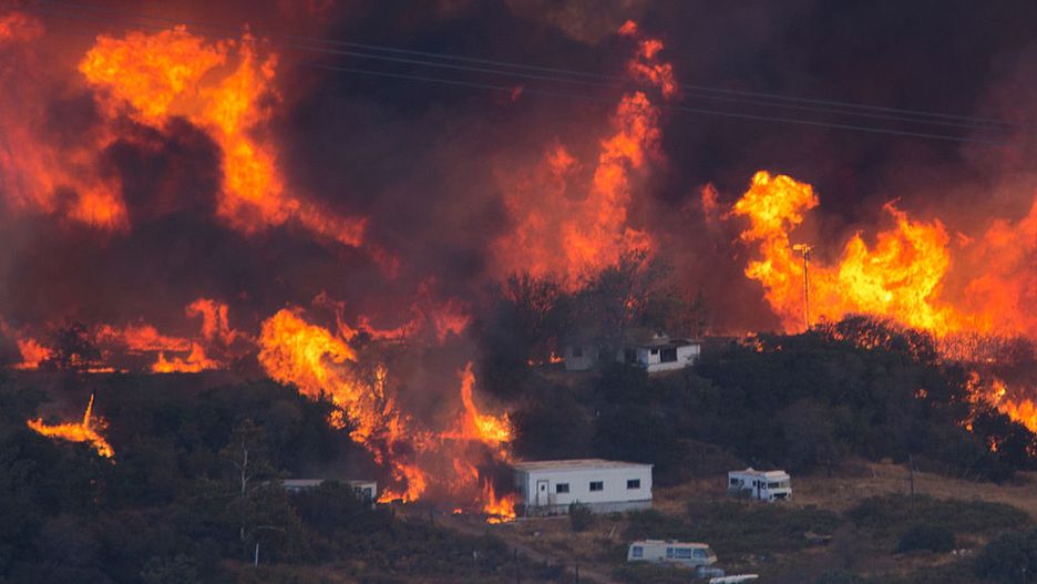 Ogień niszczy domy i wypędza ludzi. Strażacy spodziewają się pogorszenia sytuacji. Z powodu pogody.
