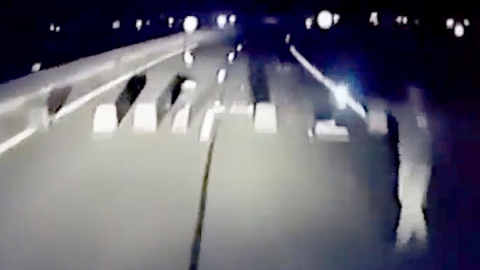 Na kręconym nocą wideo widać rozrzucone na drodze kawałki betonu i mężczyznę z flarą. Idzie on wprost przed kabinę kierowcy. Sorin opowiedział, że ten widok przeraził go, wtedy dodał gazu. Przestraszył się, że ktoś chce porwać jego ciężarówkę.