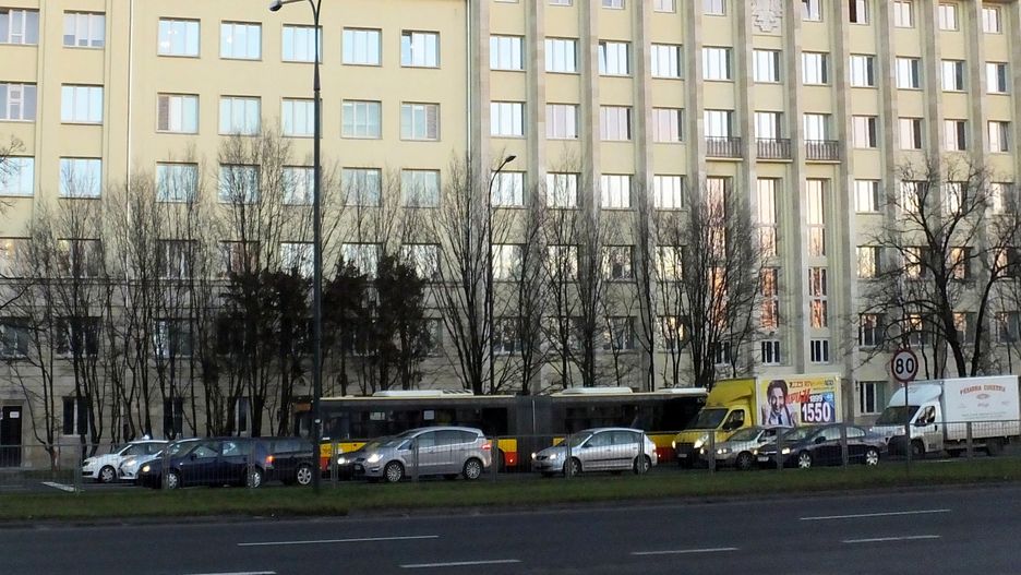 Na budynku przy ulicy Wawelskiej w Warszawie aktywiści z Greenpeace rozwiesili transparent z hasłem "Cała puszcza parkiem narodowym". Na miejscu jest już policja.