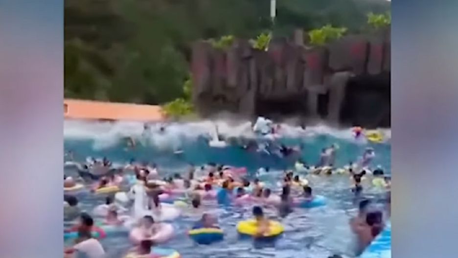 Urządzenie było uszkodzone. Na opublikowanym w sieci nagraniu widać, jak w tylnej części basenu tworzy się ogromna fala tsunami. Następnie z dużą prędkością przesuwa się w głąb basenu i uderza w pływających tam ludzi. Według władz incydent spowodowało wcześniejsze odcięcia zasilania.
