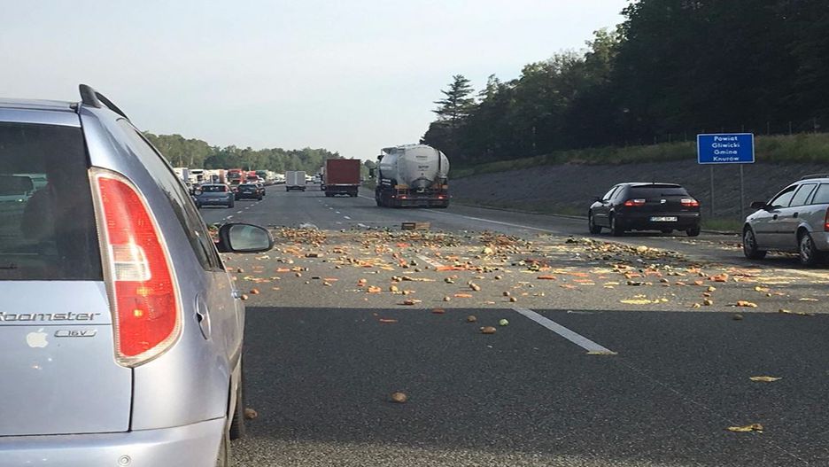 Cały pas trasy A1, zasypany jest warzywami. Na miejscu pracują już służby, zabezpieczając teren i sprawdzając przyczyny wypadku. Zorganizowano także specjalny objazd - kierowcy będą musieli zjeżdżać z autostrady już na wysokości Knurowa w kierunku Czerwionki.