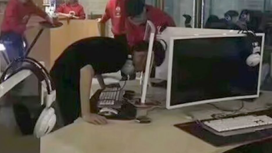 Wielu graczy wyżywa się na klawiaturze, inni rzucają myszkami o ścianę. Według serwisu iFeng, ten młody gracz miał dość i zakończył grę przebijając głową monitor z którego korzystał. Widząc, jak wstąpił w niego demon destrukcji, koledzy wyciągnęli komórki i zaczęli robić zdjęcia. Tymczasem obsługa zajęła się ratowaniem chłopaka.
