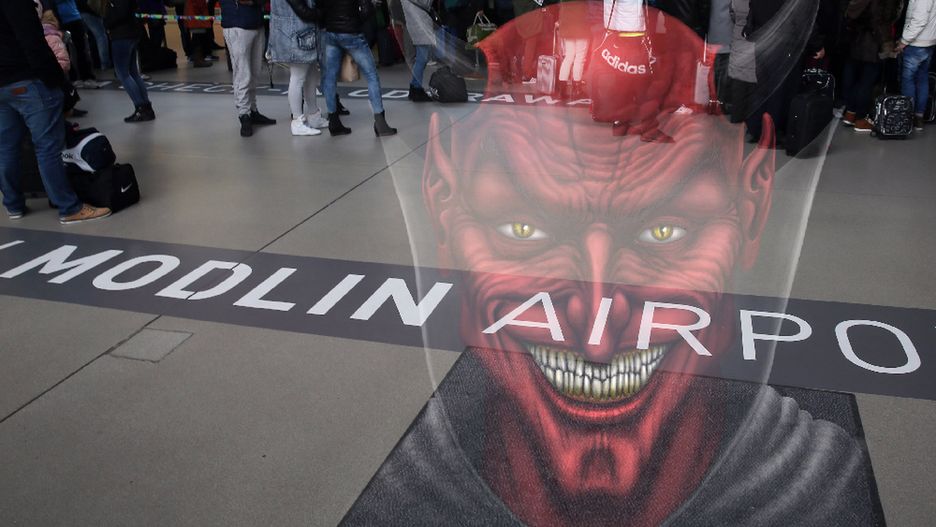 Hakerzy zaatakowali stronę lotniska w Modlinie. Witał uśmiechnięty diabeł