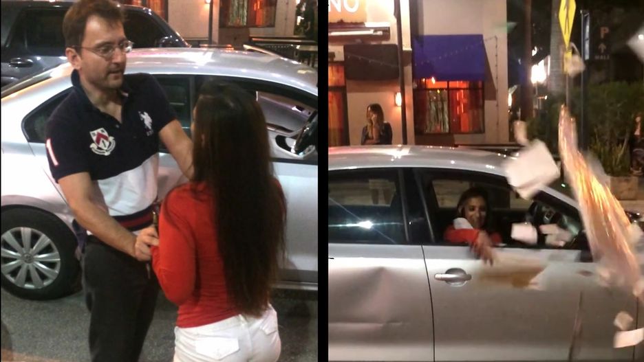 Para zaproponowała, że zrezygnuje, ale kierowca się nie zgodził. Kobieta z tylnego siedzenia ani myślała odpuścić. Powiedziała, że nigdzie się nie ruszy. Kierowca udał, że dzwoni na policję i... wtedy się zaczęło. Kobieta wpadła w furię i wyrwała kluczyki ze stacyjki pojazdu. Resztę możecie zobaczyć na filmiku poniżej.