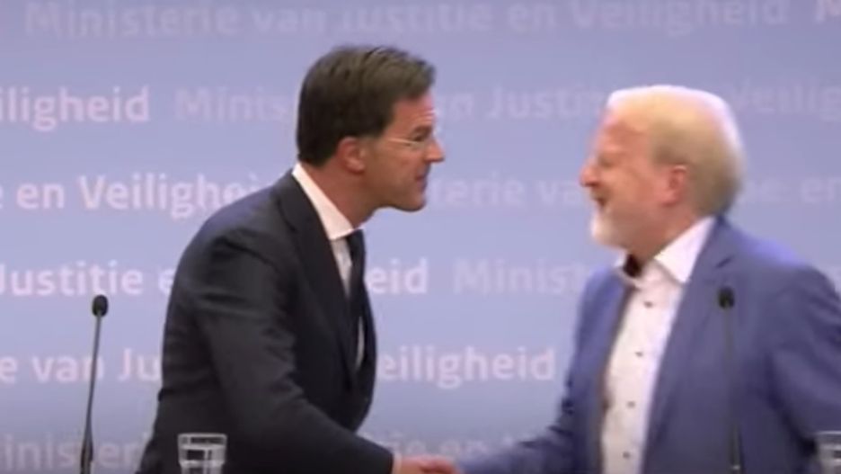 Jaap van Dissel szybko napomniał premiera. Gestem dał mu znać, aby stuknęli się łokciami. Mark Rutte wyjaśnił, że pożegnał się uściśnięciem dłoni z nawyku.