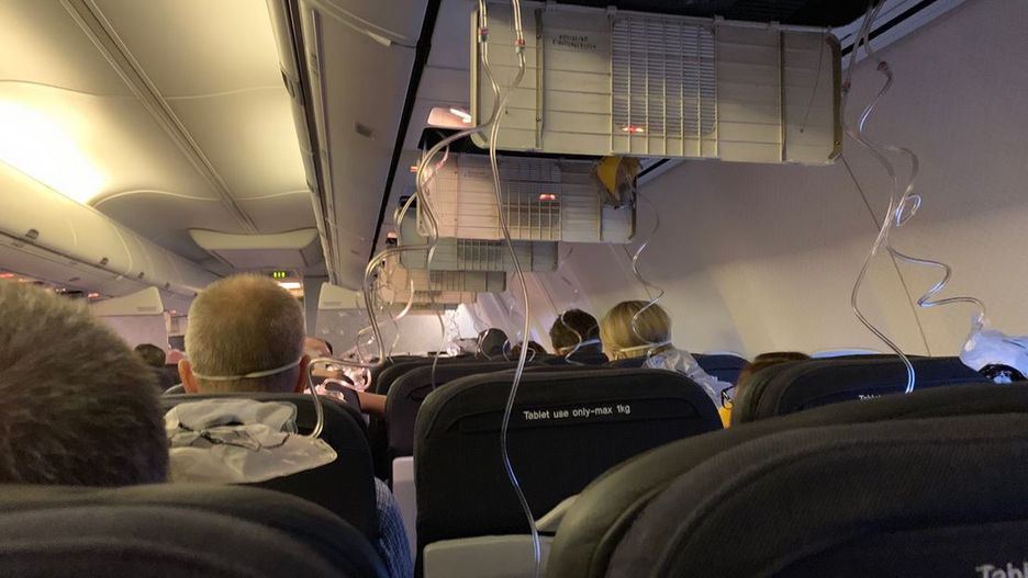 Podróżni najpierw usłyszeli huk. Chwilę później maszyna zaczęła obniżać lot, a pasażerów poproszono o założenie masek tlenowych. Jak relacjonował jeden z nich Greg Denehy, zdjąć można je było dopiero, gdy samolot zszedł na wysokość 3000 metrów.