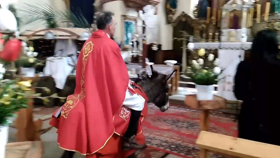 Ta nietypowa sytuacja miała miejsce podczas obchodów Niedzieli Palmowej w kościele w Nowym Gierałtowie na Dolnym Śląsku. Ksiądz postanowił odwzorować przybycie Jezusa do Jerozolimy i wjechał do świątyni na ośle.
