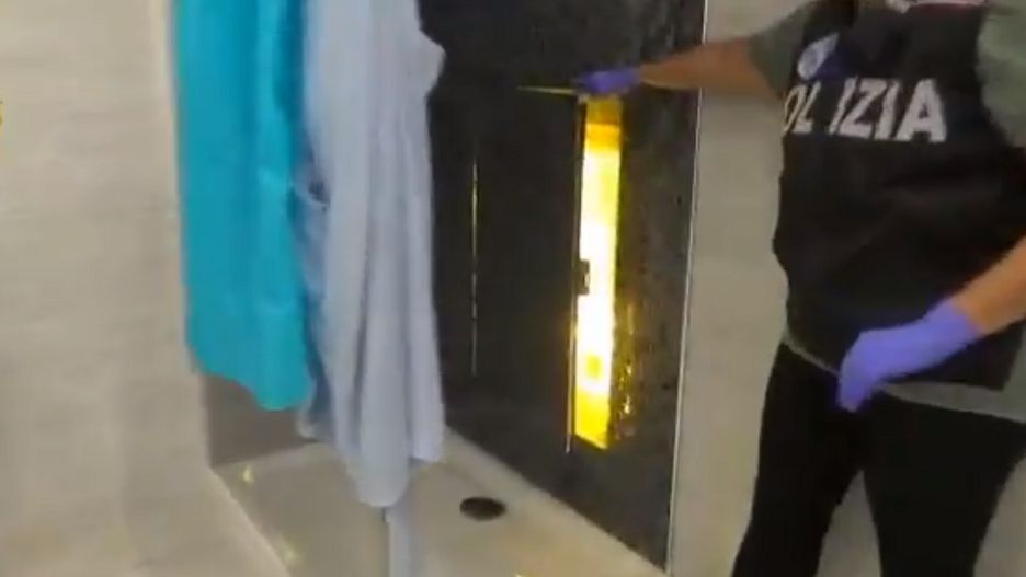 Policja nie wyjawia, jak dokładnie wpadła na trop. W domu 30-letniego mężczyzny w Viale Elmas w sardyńskiej gminie Cagliari policjanci znaleźli sekretne drzwi w łazience. Ukryta pod prysznicem klapa była praktycznie niewidoczna dla niewtajemniczonych. Prowadziła do ogromnego pomieszczenia wypełnionego złotym światłem.
