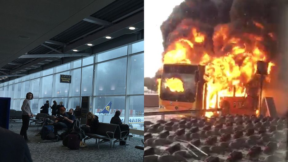 Na parkingu przed portem lotniczym w Wielkiej Brytanii spłonął autobus. Kłęby czarnego dymu spowiły całą okolicę i napędziły wielu pasażerom strachu.