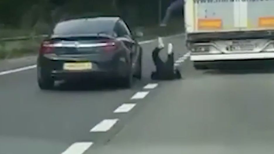 Film nakręcił kierowca jadący autostradą M1 w Wielkiej Brytanii. Zaraz obok znajdował się punkt obsługi podróżnych Northampton Services. Jak podaje "Daily Mail", z ciężarówki wyskakiwali najprawdopodobniej imigranci. Nagranie możecie zobaczyć poniżej: