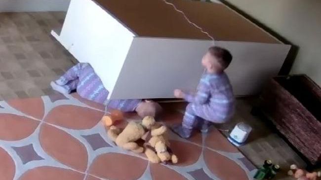 Bliźniacy przewrócili komodę, bo wspinali się na jej otwarte szuflady. Moment, w którym mebel przechyla się i zaczyna upadać na chłopców, wygląda bardzo groźnie. Później nie jest lepiej. Na szczęście, dzięki chłodnej kalkulacji i niesamowitej sile dwulatka, wszystko skończyło się dobrze - informuje "The Sun".