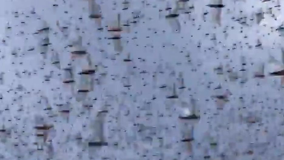 Widać na nim niezliczoną masę szarańczy krążącą w powietrzu, nieopodal świętej dla miejscowych góry Ololokwe. Przez rój owadów przedziera się ciężarówka, zmierzająca w kierunku etiopskiej granicy. Jak opisuje autor filmu, mieszkańcy byli "przerażeni" widokiem, choć właśnie trwa sezon migracji tych insektów na północ kontynentu.