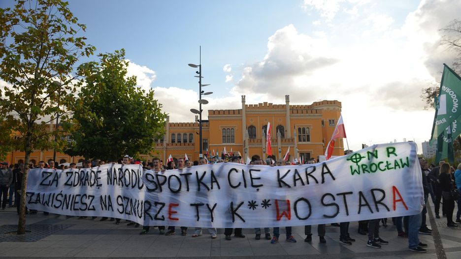 Narodowcy we Wrocławiu wyrazili sprzeciw wobec obecnej władzy. Atrakcją marszu ONR był kontrowersyjny transparent.