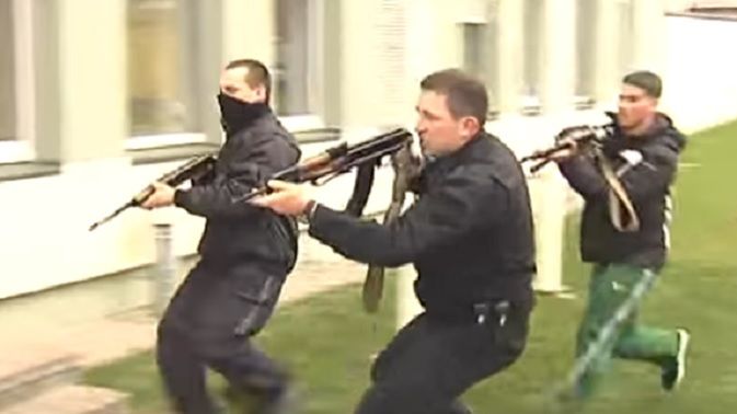 Choć nikt nie wiedział, że to ćwiczenia, nikt nie zareagował. Mieszkańcy jednego z największych skupisk Polaków na Litwie nie poinformowali władz o podejrzanie przemieszczających się mężczyznach. Uzbrojeni w karabiny ludzie opanowali lokalny posterunek i wzięli zakładników. Policja chciała odbić budynek, ale skończyło się na bezowocnej strzelaninie. Zbyt późno poproszono o pomoc władze centralne, więc agresorzy zaczęli "zabijać" zakładników. Wtedy minister zakończył ćwiczenia.