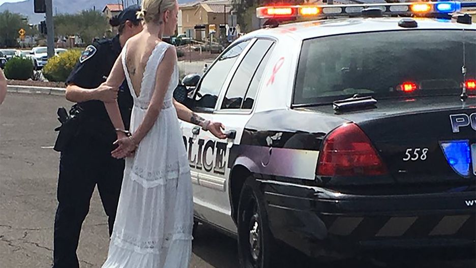 Patrol drogówki z Marana na południu stanu zatrzymał 32-latkę za jazdę po pijanemu. Amber Young w poniedziałek rano jadąc do kościoła spowodowała serię kolizji. W sumie zniszczone zostały trzy samochody, ktoś trafił też z lekkimi obrażeniami do szpitala. Kobietę w sukni ślubnej zakuto w kajdanki, wsadzono na tył radiowozu i odwieziono na posterunek.