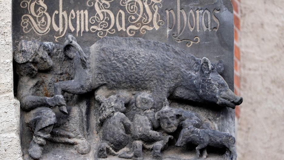 Podobne rzeźby, tzw. Judensau (niem. żydowska maciora), do dziś znajdują się na niektórych europejskich kościołach. To poniżające przedstawianie Żydów pojawiło się w XIII wieku, ale było popularne przez kolejne 600 lat.