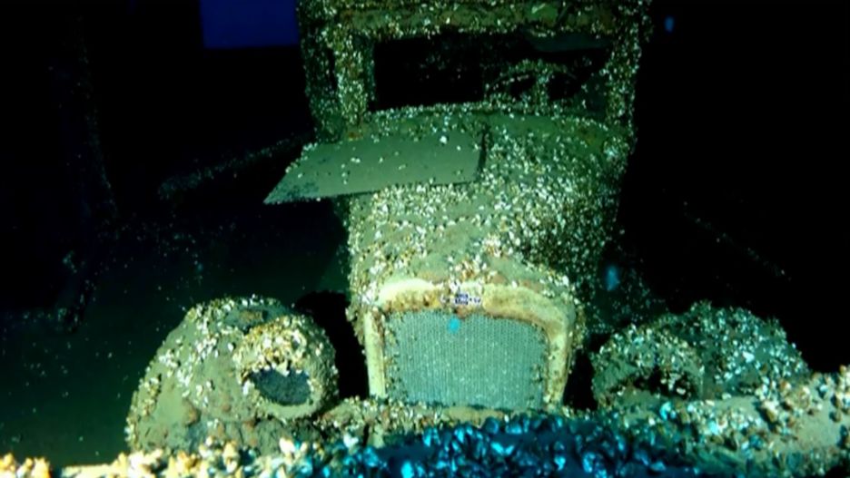 Odkrywcy znaleźli na pokładzie m.in. ponad 90-letni samochód. To Chevrolet Coupe rocznik 1927. W tej chwili cały jest pokryty organizmami żyjącymi w wodzie. Samochód płynął zapewne do nabywcy, kiedy statek poszedł na dno.