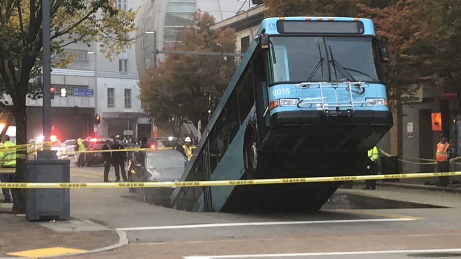 Do zdarzenia doszło w centrum Pittsburgha, w stanie Pensylwania. Świadkowie zdarzenia relacjonują, że autobus stał na światłach, gdy nagle droga pod nim zaczęła się zapadać, a w raz z nią pojazd.