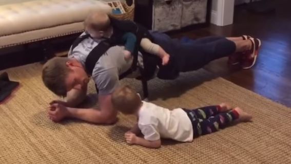 Po narodzinach dzieci nic już nie jest takie samo. Amerykanin Brent Kruithof nie mógł znaleźć czasu na ćwiczenia, więc wymyślił trening, którego ważną częścią są... jego dwaj synowie. Na Facebooku filmik obejrzano ponad 23 miliony razy!