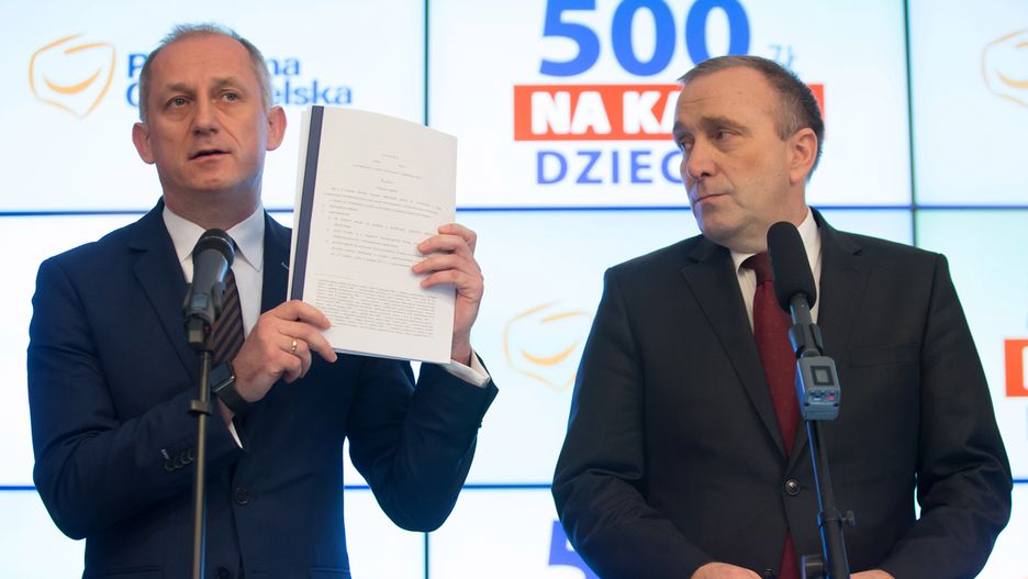 Nie trzeba wtedy zatrudniać nowych ludzi, nie trzeba powoływać nowych komórek w samorządach. W takiej sytuacji te środki, które są w budżecie - 18 miliardów złotych - wystarczą na to, aby na każde dziecko od połowy roku można było przeznaczyć 500 złotych - Neumann zachęcał do projektu swojej partii.