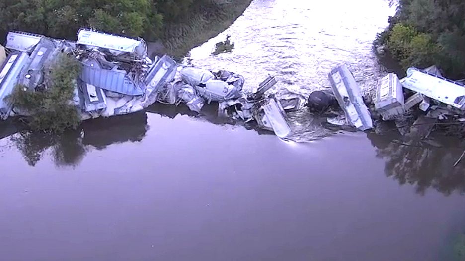 Do koryta Floyd River w stanie Iowa wpadło 20 wagonów. Cały skład liczył 100 wagonów. Należy do firmy Union Pacific. Pociąg jechał z Mankato w Minnesocie do North Platte w Nebrasce.