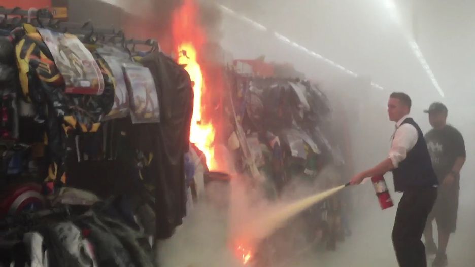 Motywy działania mężczyzny nie są jasne. Paul Miller, inny klient sklepu, nagrał pracowników gaszących płonące kostiumy.