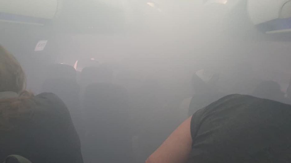 Gęste kłęby dymu pojawiły się nagle na pokładzie samolotu British Airways. Na jednym z nagrań widać, jak pasażerowie z trudem łapią oddech, podczas gdy maski tlenowe z jakiegoś powodu nie chcą działać.