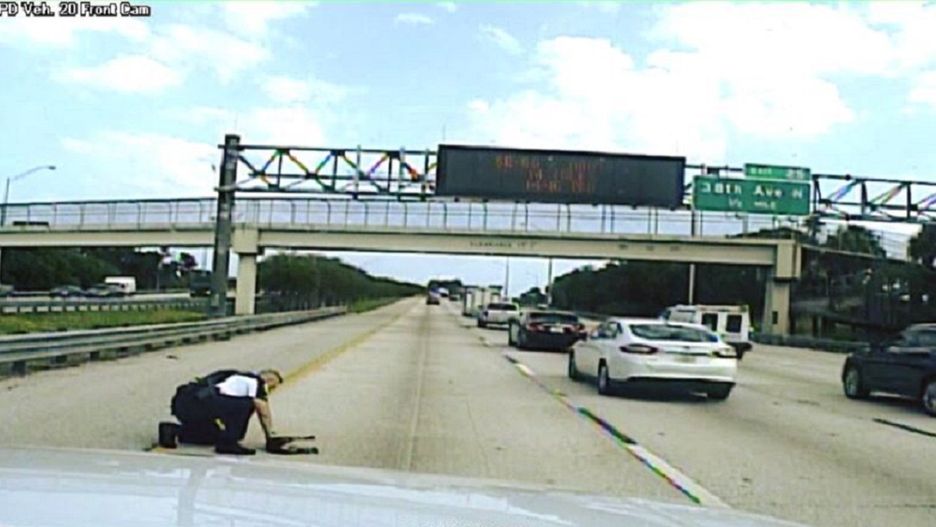 Funkcjonariusz Joseph Puglia z Pinellas Park zmierzał do pracy drogą międzystanową 275. W pewnym momencie zauważył leżącego na jezdni psa. Zwierzę zostało chwilę wcześniej potrącone przez inny pojazd.