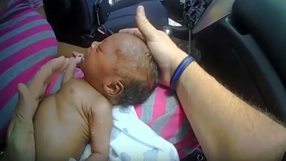 Wewnątrz auta matka trzymała noworodka, dziecko nie ruszało się. Zastępca szeryfa momentalnie ruszył dziecku na pomoc. Wziął je na chwilę na ręce, a następnie położył na kolanach matki, po czym rozpoczął reanimację.