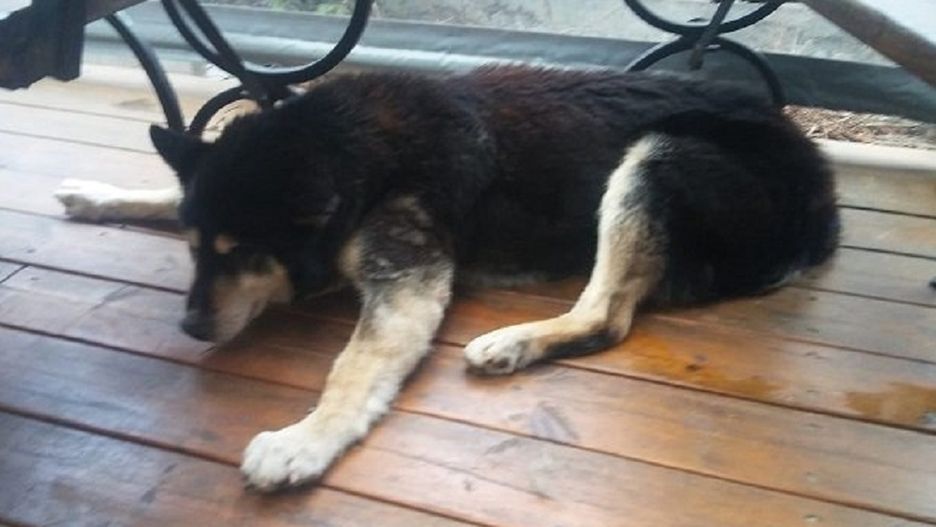 Mundurowy podszedł do budynku i zajrzał przez okno do środka. Wtedy zobaczył psa, którego głowa i łapy były zakleszczone w żeliwnym stojaku na rowery. Zwierzę było wyraźnie wychudzone i wycieńczone.