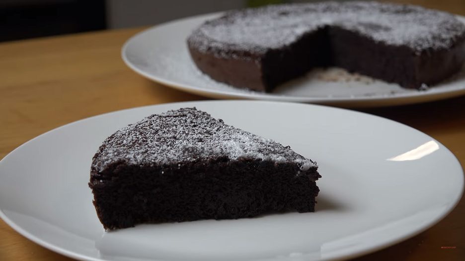 I gotowe! Czekoladowe ciasto będzie fantastycznie smakowało z wiśniami lub innymi kwaśnymi owocami, ale tak naprawdę nie potrzebuje żadnego towarzystwa. A brak cukru (poza tym w czekoladzie) oraz mąki sprawia, że nie będziesz mieć po nim większych wyrzutów sumienia.