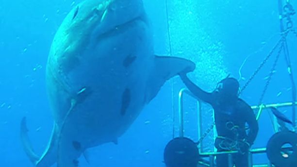 Przybił piątkę z największym rekinem ludojadem na świecie. Co za bestia!