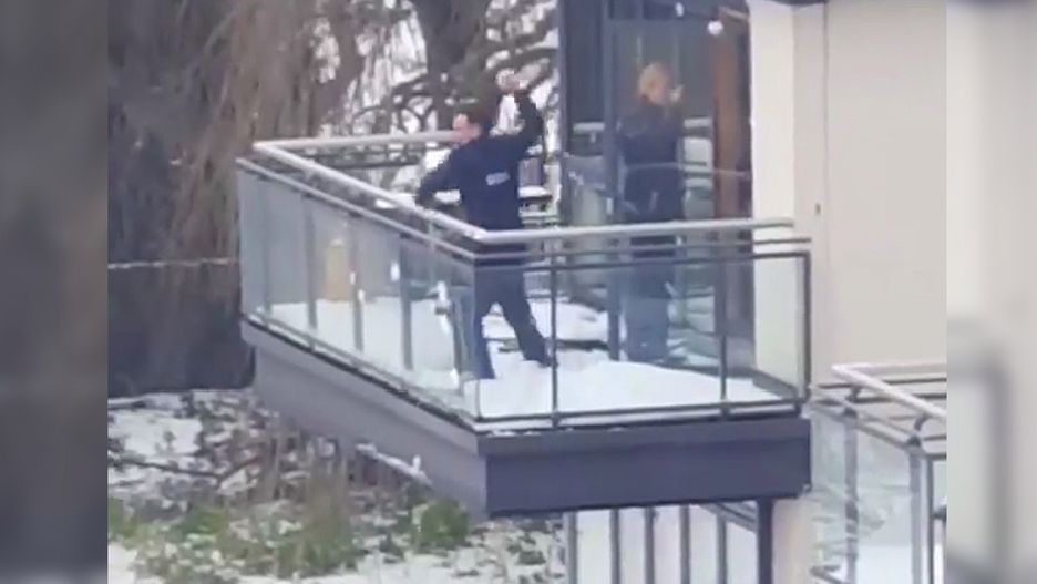 Głos zza kadru sugeruje, że patrol wezwano właśnie z powodu obrzucania budynku śniegowymi kulami. Gardai szukali "napastników", tymczasem sami znaleźli się na ich łasce. Jeden z interweniujących postanowił odwzajemnić atak. Jego kolega, jak można się domyślać, rozmawia przez balkonowe drzwi z lokatorem mieszkania.