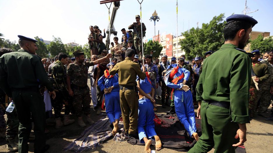 *Egzekucję przeprowadzono na placu w Sanie - stolicy Jemenu. * Obserwował ją tłum ludzi. Wiele osób nagrywało i robiło zdjęcia. Skazani mieli związane ręce i musieli położyć się twarzą do ziemi. Policjant oddał każdemu przestępcy 5 strzałów w serce. Ich zwłoki zawieszono na dźwigach, aby każdy mógł je zobaczyć - informuje "The Sun".