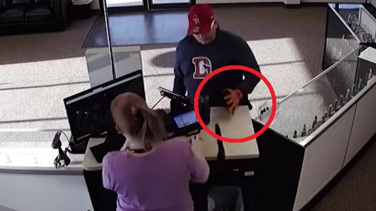 Przestępca z miasteczka Aurora upuścił broń podczas próby rabunku. Pistolet upadł za ladę. Pomimo próby niedoszłemu złodziejowi nie udało się jej podnieść.