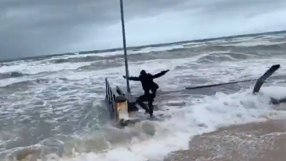 Reporter przecenił swoje możliwości. Na opublikowanym filmie widać, jak dziennikarz telewizji 9 News Melbourne biegnie w stronę morza. Nagle skacze na roztrzaskane przez burzę molo, jednak nie udaje mu się na nim ustać. Upada na plecy, uderzając się w głowę.